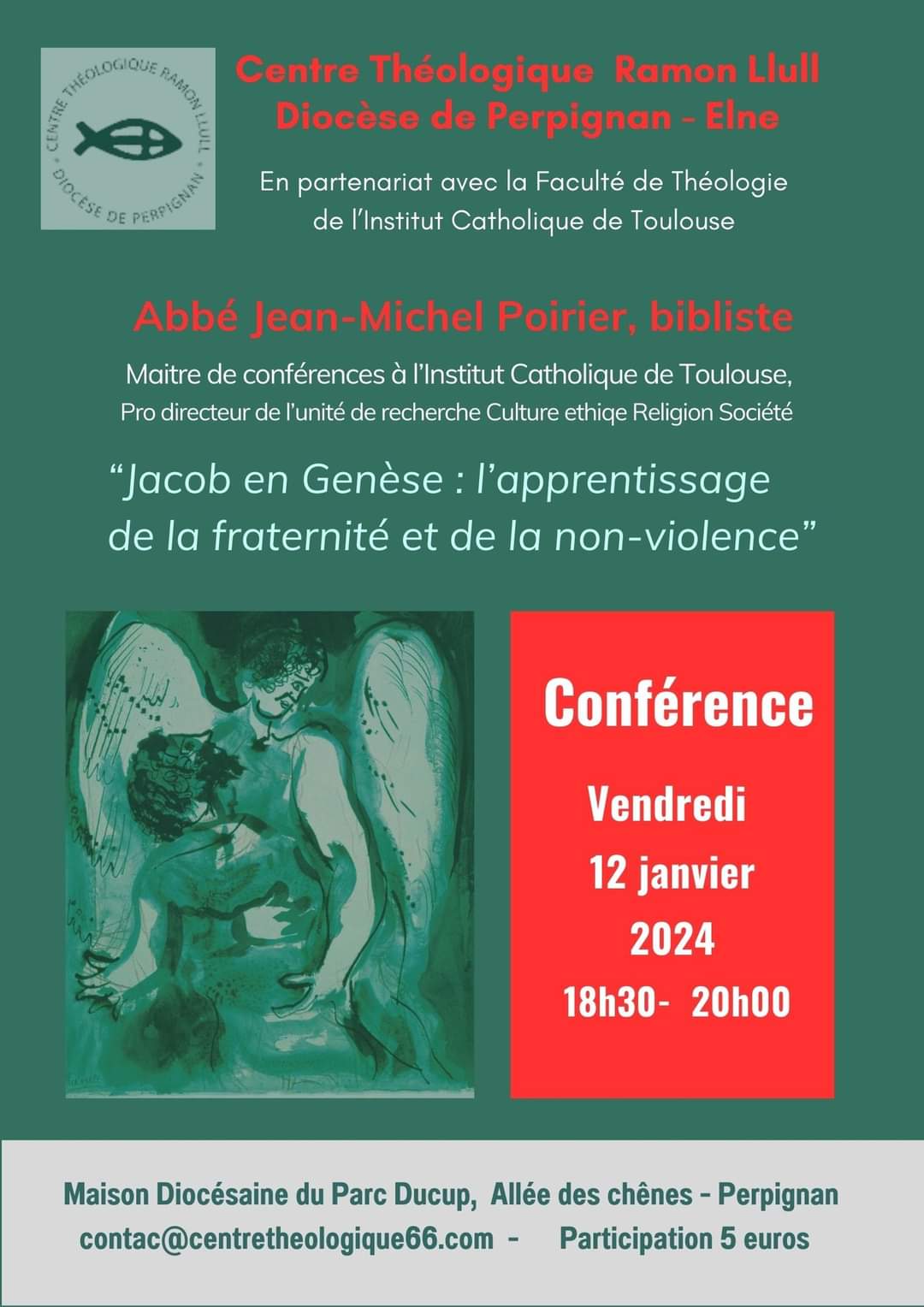Vendredi 12 janvier, le Centre Théologique Ramonn Llull reprend son cycle de conférences ouvertes à toutes et à tous avec l'Abbé Jean-Michel Poirier, bibliste et maître de conférences à l'Institut Catholique de Toulouse