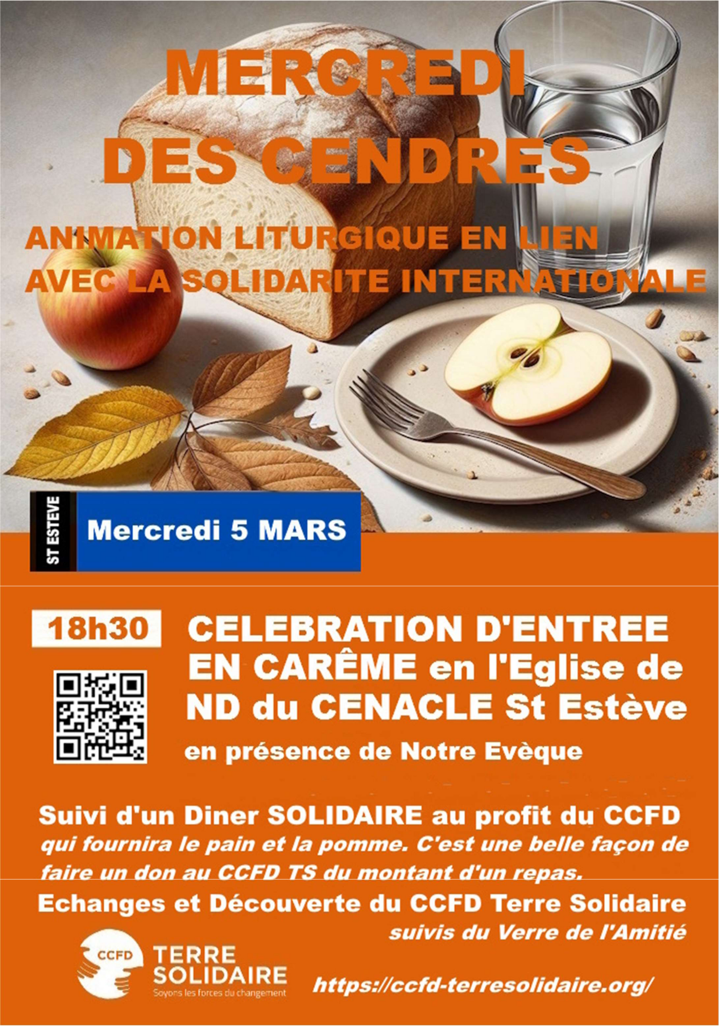 Le mercredi 5 mars marque le début du Carême avec la célébration du Mercredi des Cendres, suivi d'un pain - pomme au profil du CCFD.