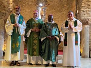 Mercredi 3 août, le service diocésain de la coopération missionnaire avait organisé une journée fraternelle et de rencontre pour les prêtres africains qui résident et servent dans notre diocèse. C'était également la dernière journée de présence de Mgr Tagbino, évêque de Kankan en terre catalane. Il a présidé la messe dans la chapelle Saint Jean Paul II, avant de partager un repas convivial avec tous les acteurs de cette journée.