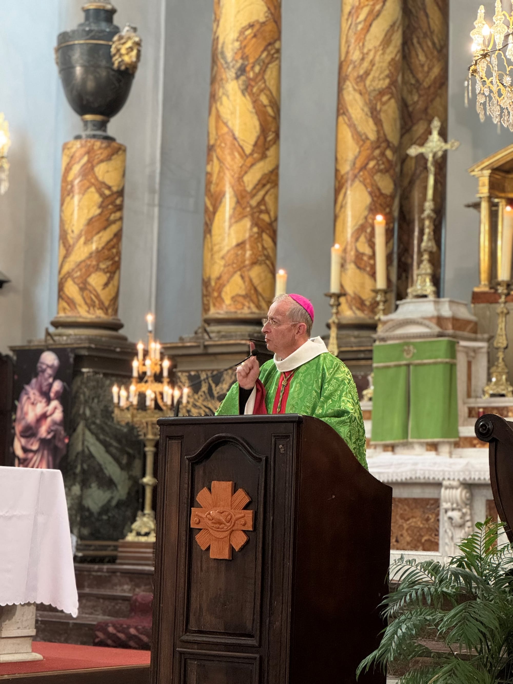 Dans son homélie, Mgr Scherrer s’est appuyé sur l’Évangile du jour : la parabole du pharisien et du publicain, pour inviter les fidèles à entrer dans une prière authentique, faite d’humilité et de confiance en la miséricorde de Dieu.