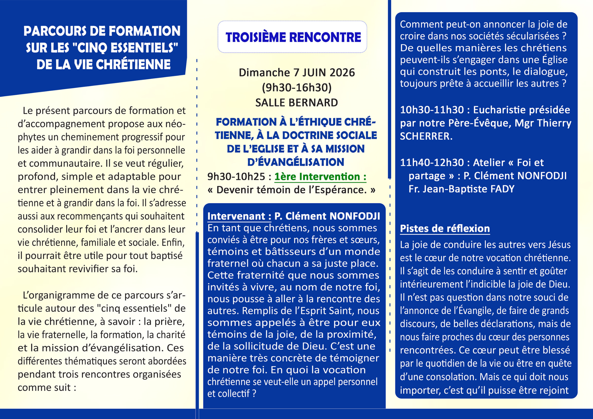 Ces journées sont l’occasion d’approfondir sa foi, de partager et de poursuivre le chemin commencé lors des sacrements.