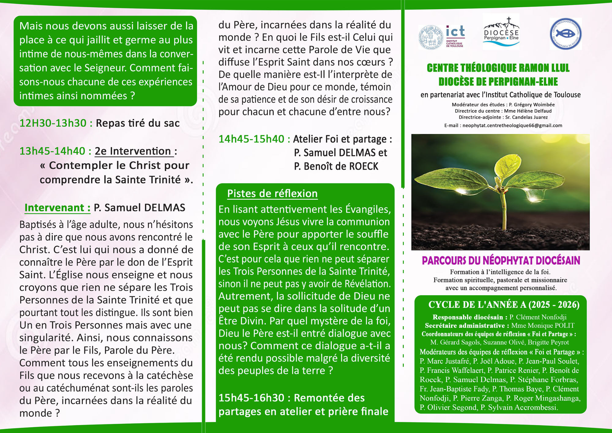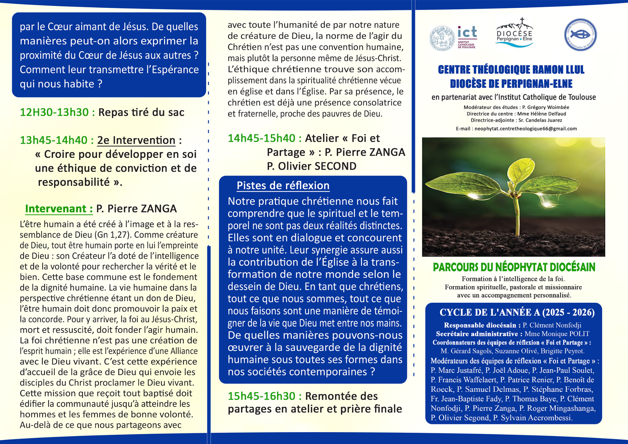 Dans le cadre du parcours du néophytat diocésain 2025-2026, le centre théologique Ramon Llull, en partenariat avec l'institut Catholique de Toulouse, propose aux néophytes de se retrouver pour des temps de rencontre, de formation et de fraternité.