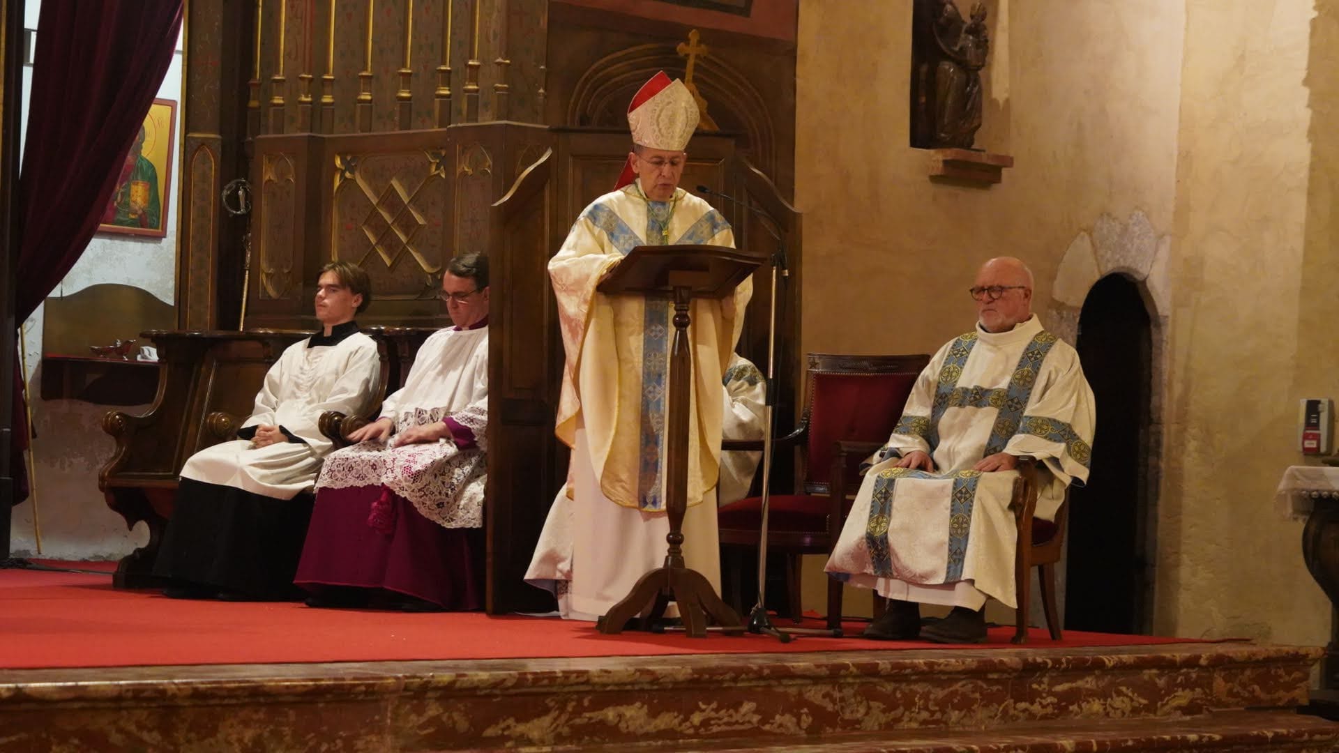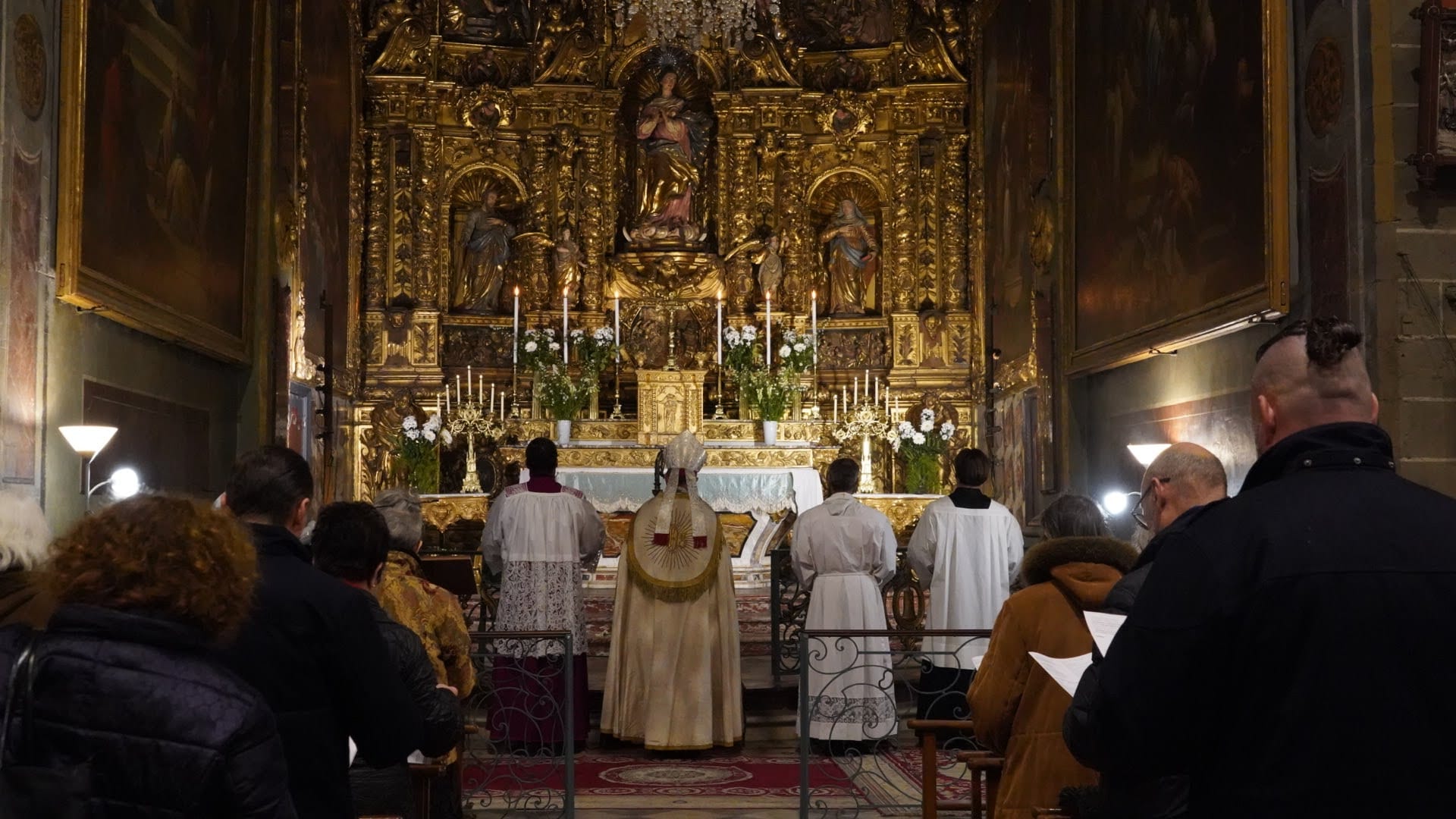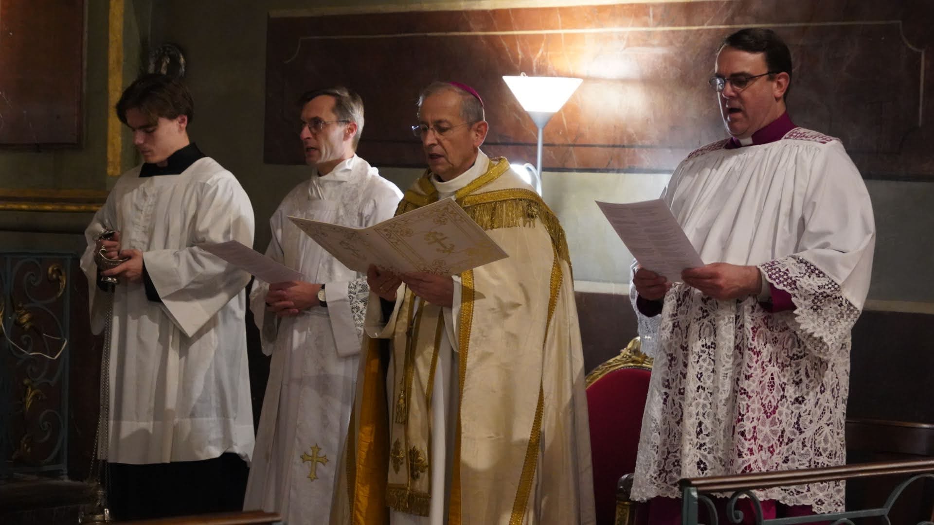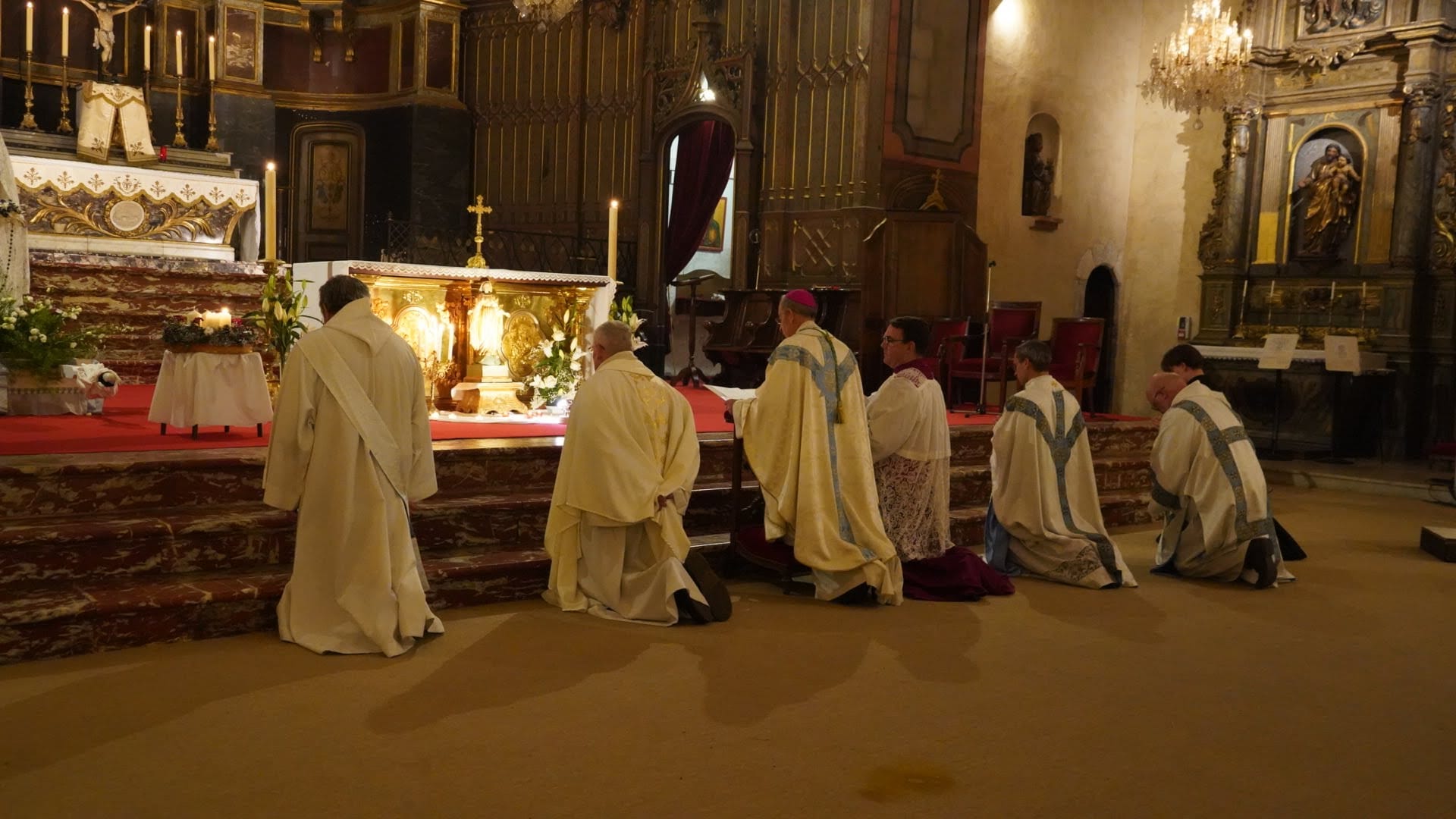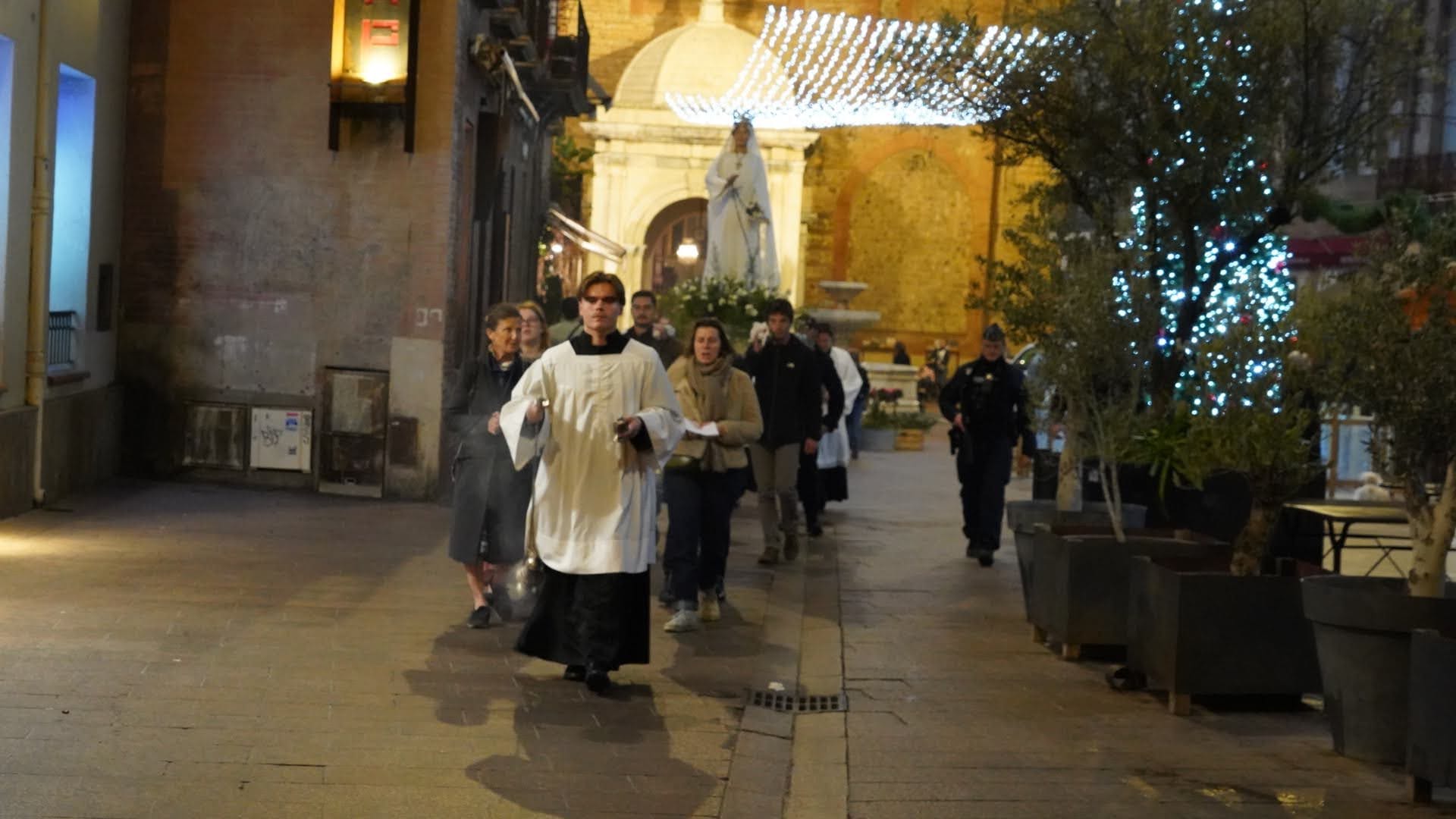 Et c'est bien le sens de notre présence ici ce soir. À l'école de Marie qui espère, nous venons déposer au pied du Seigneur le fardeau de nos soucis, de nos inquiétudes, de nos peurs : nos soucis d'ordre matériel ou spirituel ; nos inquiétudes face à un avenir incertain, nos peurs de vieillir, de souffrir, de mourir. À l'école de Marie qui espère, nous réapprenons, ce soir, la grâce de l’acquiescement ; nous désirons consentir, avec elle et comme elle, aux événements qui tissent la trame de notre quotidien. Nous voulons redire avec elle notre Fiat à la volonté du Seigneur, non pas avec une âme résignée, à contrecœur, mais avec le même empressement, le même désir, la même impatience, la même joie que la sienne. « Vierge Marie, notre Mère, enseigne-nous à croire, à espérer et à aimer avec toi. Dans l'obscurité de la nuit, brille sur nous, guide-nous sur la route. Conduis-nous, instant après instant, sur un chemin de lumière, jusqu'au jour bienheureux où nous contemplerons Dieu face à face, dans la claire vision de sa splendeur ». Amen."