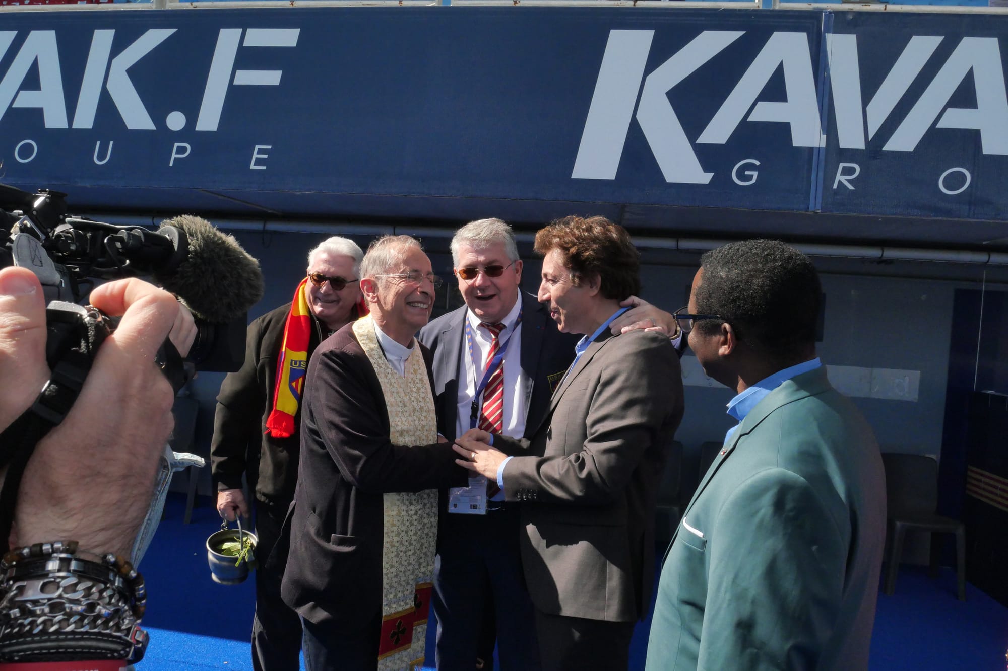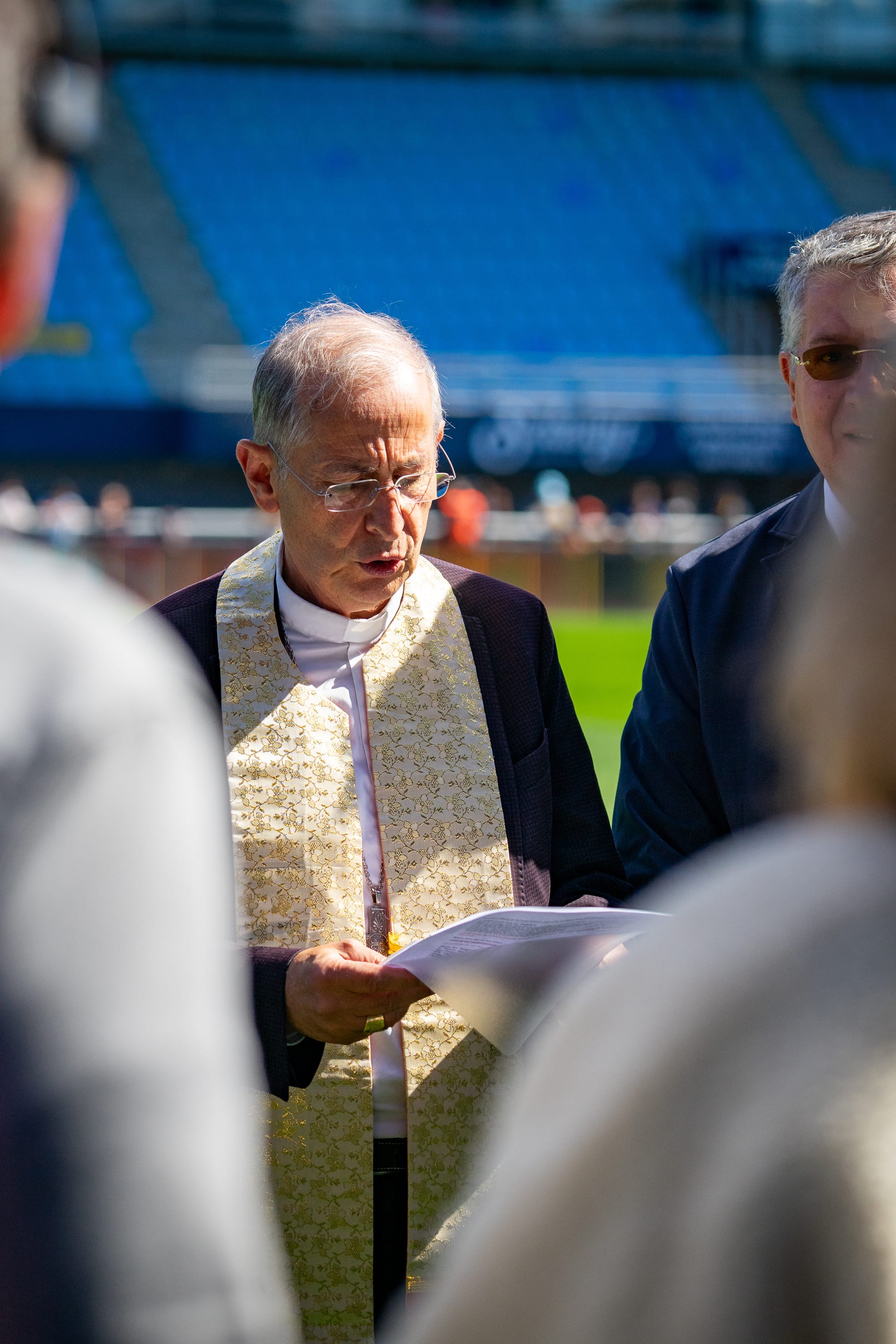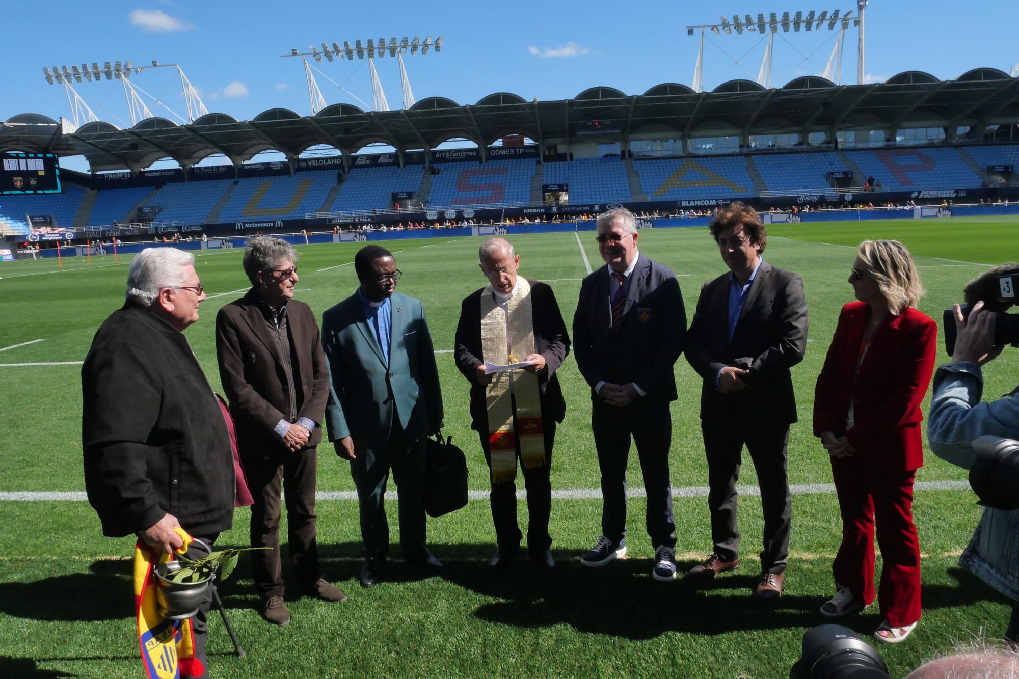 C'est à une bénédiction inédite qu'a procédé notre Évêque, Monseigneur Thierry Scherrer, ce samedi en début d'après-midi. À la demande de François Rivière, Président de l'Usap et de son staff, notre évâque a béni la nouvelle pelouse hybride du stade Aimé Giral.
