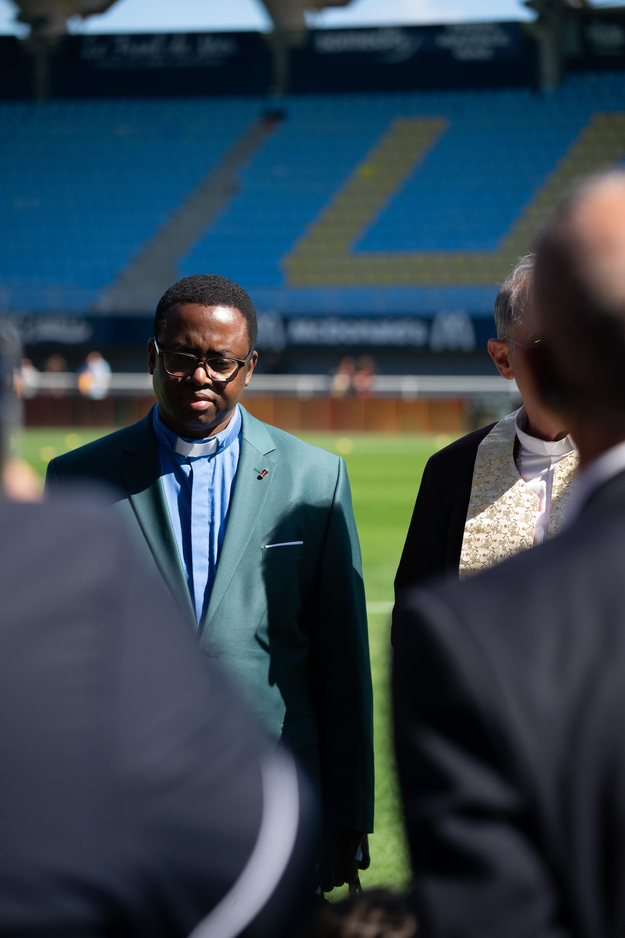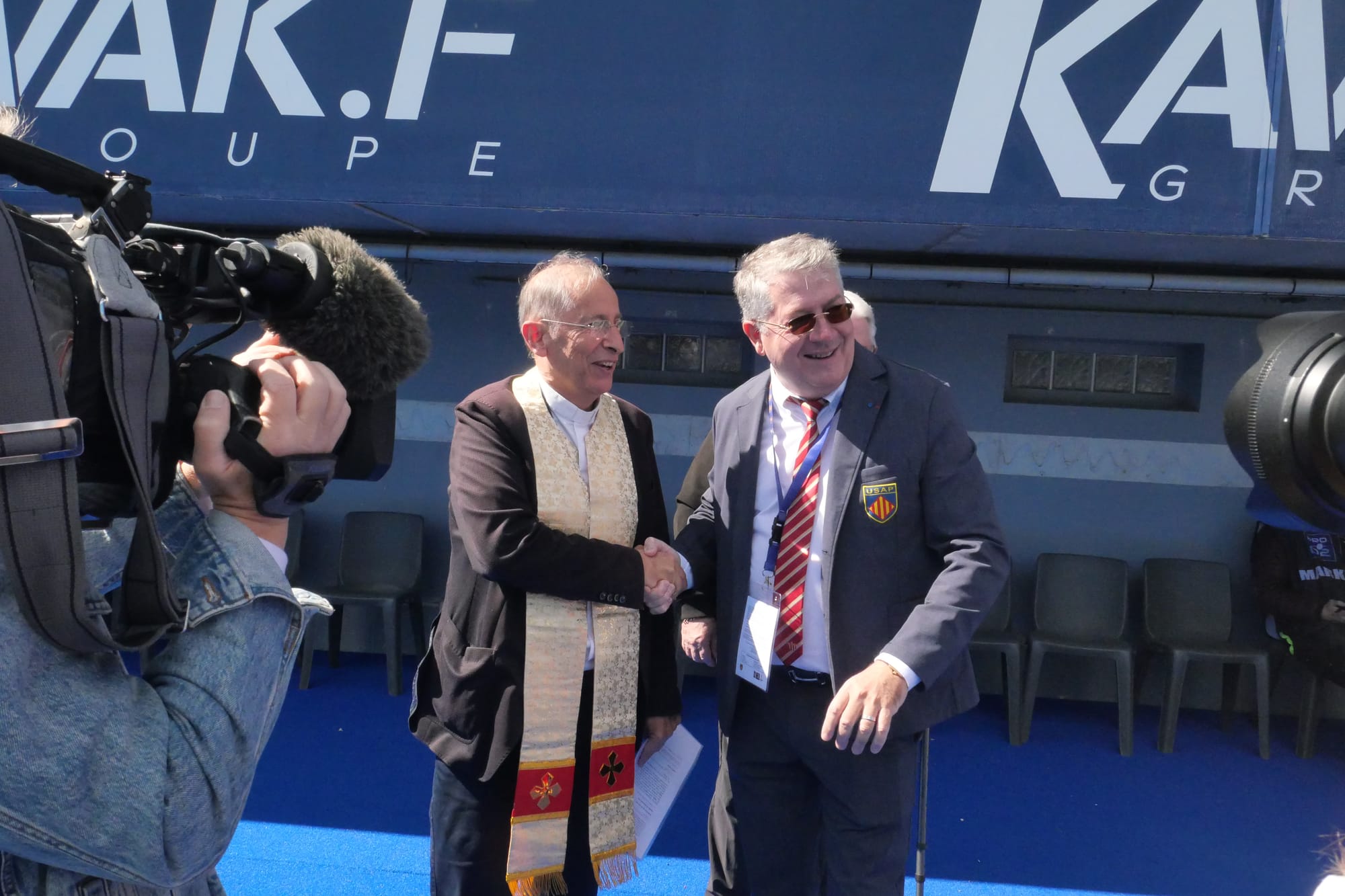 Entouré des représentants des autres religions du Livre (Joël Setsoafia Yawo-Nake, pasteur de l’Église protestante Unie de France, Daniel Halimi, président de la communauté juive des Pyrénées-Orientales, et le Dr Salim Bencheikh, président de la Grande mosquée de Perpignan), Monseigneur Scherrer a lu un extrait de la première lettre de saint Paul Apôtre aux Corinthiens où "l'avorton de Dieu" comparait déjà la nécessaire endurance du chrétien avec celle du sportif: "Tous les athlètes à l’entraînement s’imposent une discipline sévère (...) Vous savez bien que, dans le stade, tous les coureurs participent à la course, mais un seul reçoit le prix. Alors, vous, courez de manière à l’emporter".