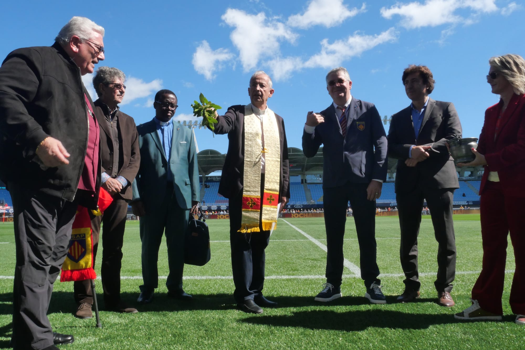 Ce samedi 29 septembre, à la demande de ses dirigeants, Monseigneur Thierry Scherrer, Évêque du diocèse Perpignan-Elne, a procédé à la bénédiction de la nouvelle pelouse du stade Aimé Giral, quelques minutes seulement avant que l'Usap ne l'emporte brillamment contre la redoutable équipe de Clermont-Ferrand 33 à 3 !