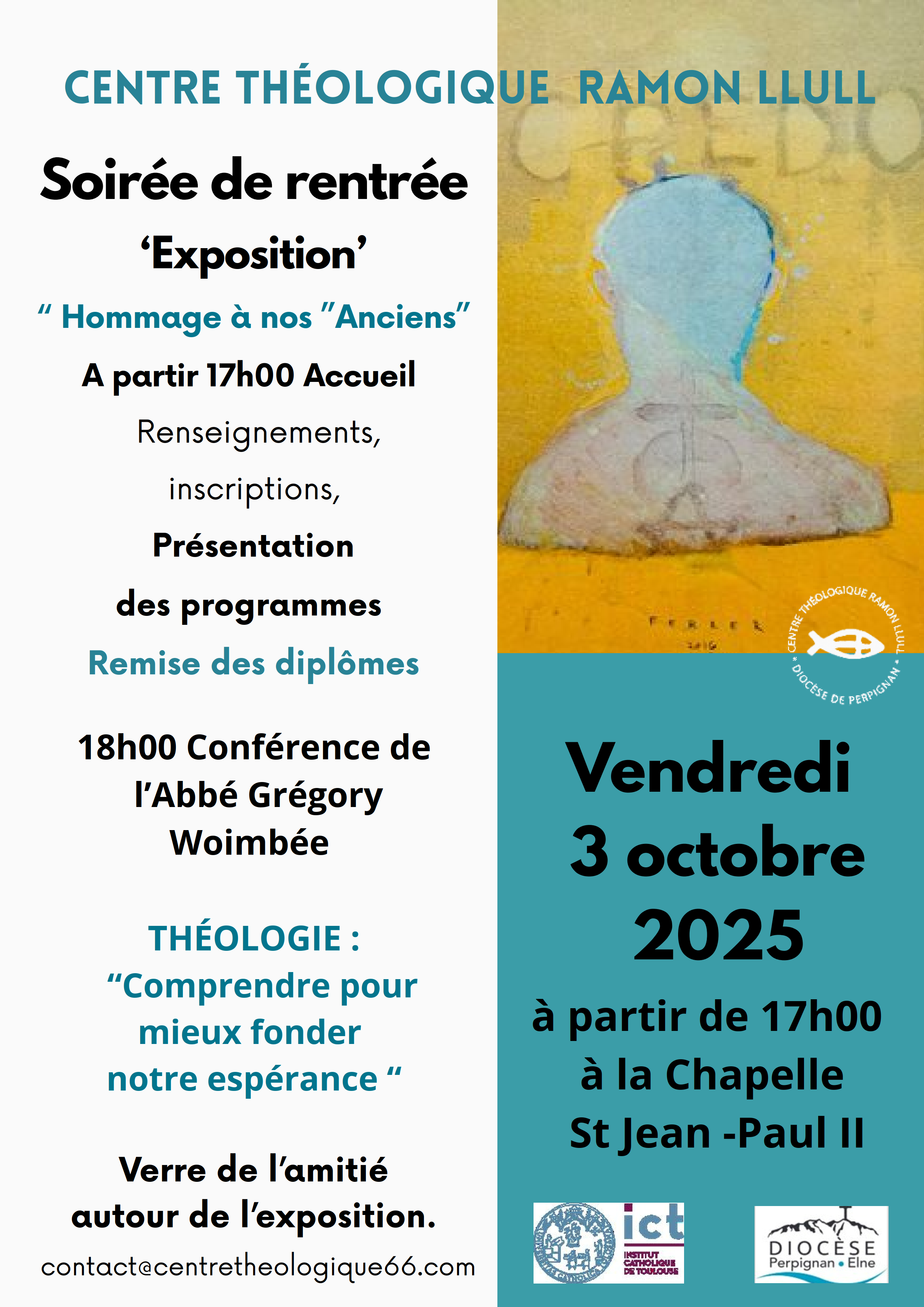 18h05 : Conférence inaugurale de l'Abbé Grégory Woimbée: "Théologie : 'Comprendre pour mieux fonder son espérance '